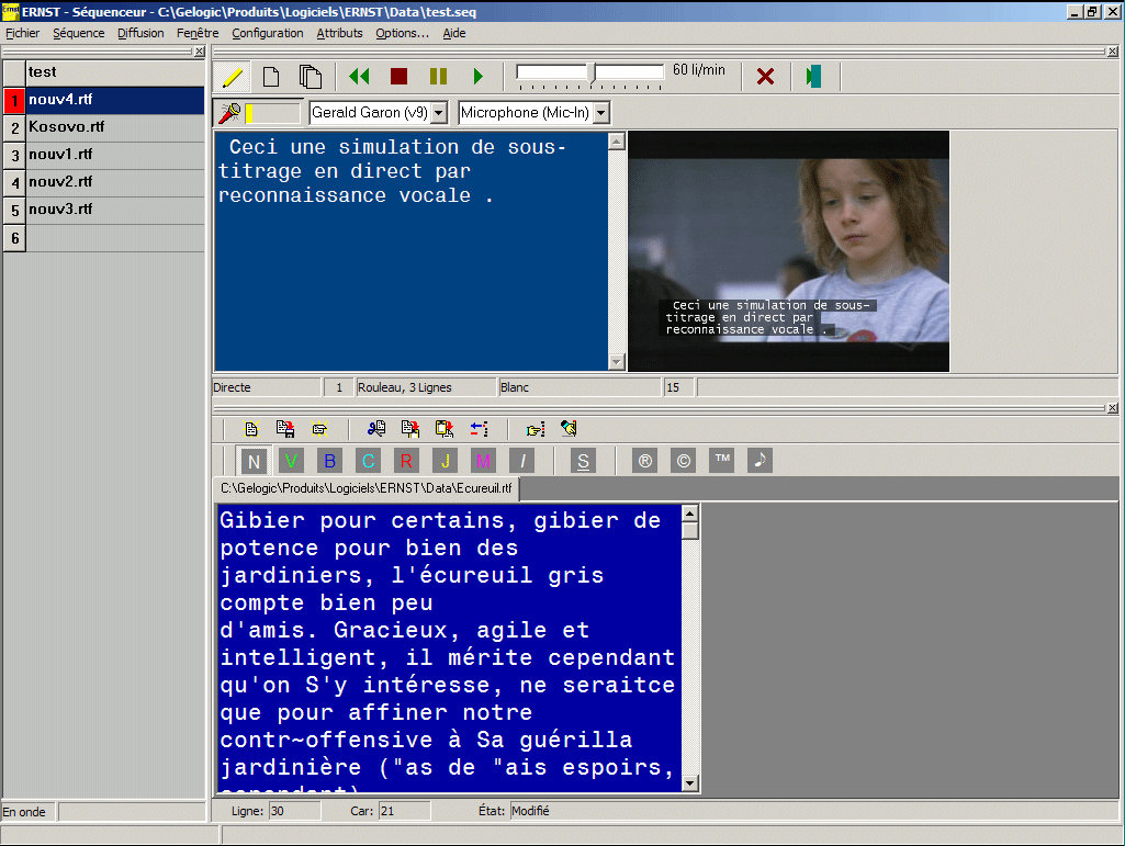 The sequencer allows the creation, importing and modification of a document sequence to broadcast.
